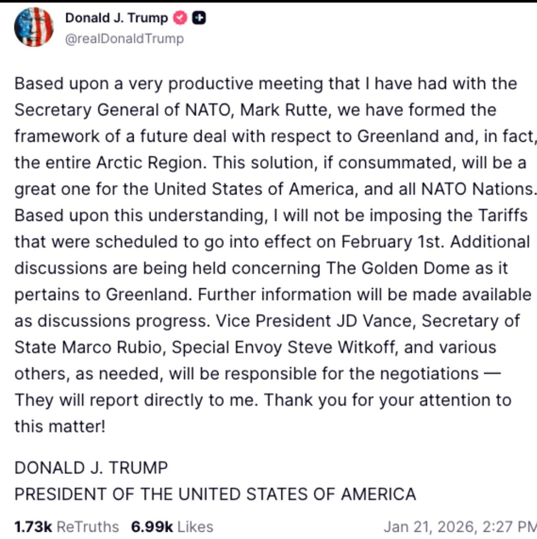Uttalelsen markerer et tydelig skifte – fra press og forhandlinger til ren avskrekking.