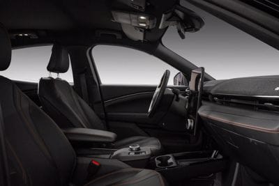 interiør): Førermiljø og forseter i Ford Mustang Mach-E.