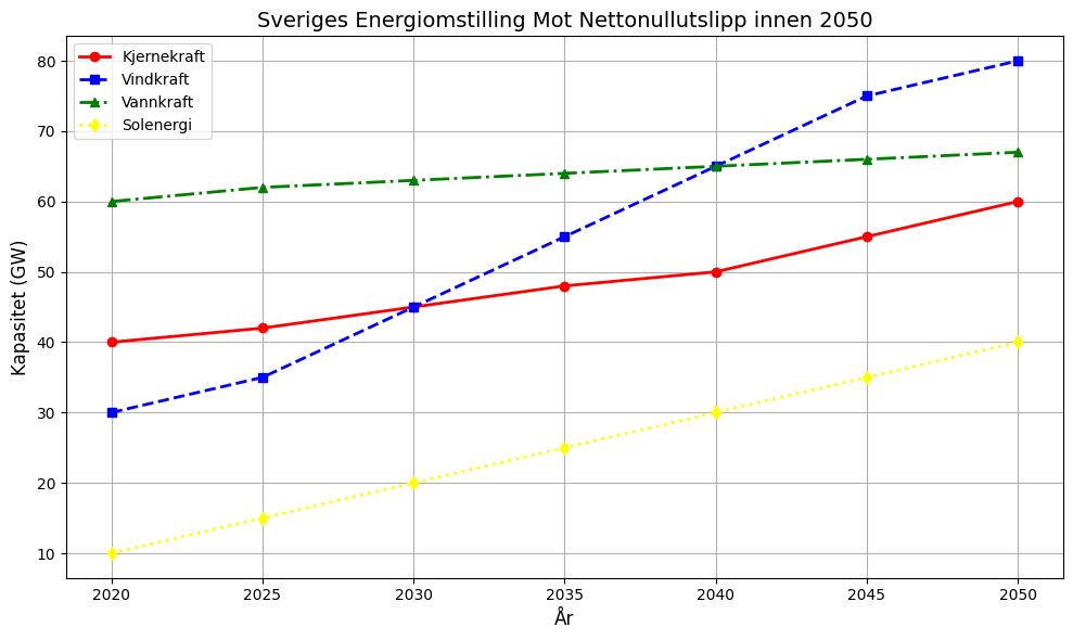 Sverige står overfor en av de største transformasjonene i sitt energisystem. Landet har satt seg som mål å nå netto nullutslipp innen 2045, samtidig som etterspørselen etter elektrisitet forventes å nesten dobles innen 2050. Denne økningen skyldes hovedsakelig elektrifiseringen av industri og transportsektoren, noe som innebærer en betydelig utfordring for landets energiforsyning. En rapport fra OECDs Nuclear Energy Agency (NEA) gir en detaljert analyse av hvordan Sverige kan oppnå sine mål gjennom en kostnadseffektiv energiomstilling, der kjernekraft og fornybare energikilder spiller sentrale roller.